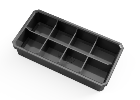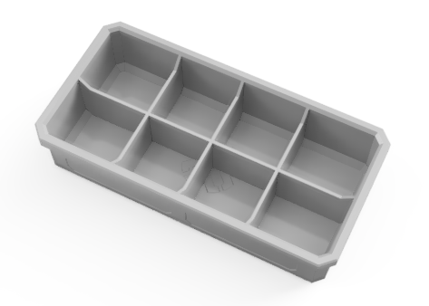 This time around we will only be making full-sized replacement trays (stock middle tray size) but you can have them in an almost unlimited variety of colours and compartmentalization.